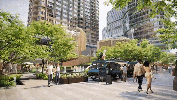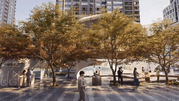 项目外立面采用Art deco三段式设想,正在屋檐下建立天然动物源。